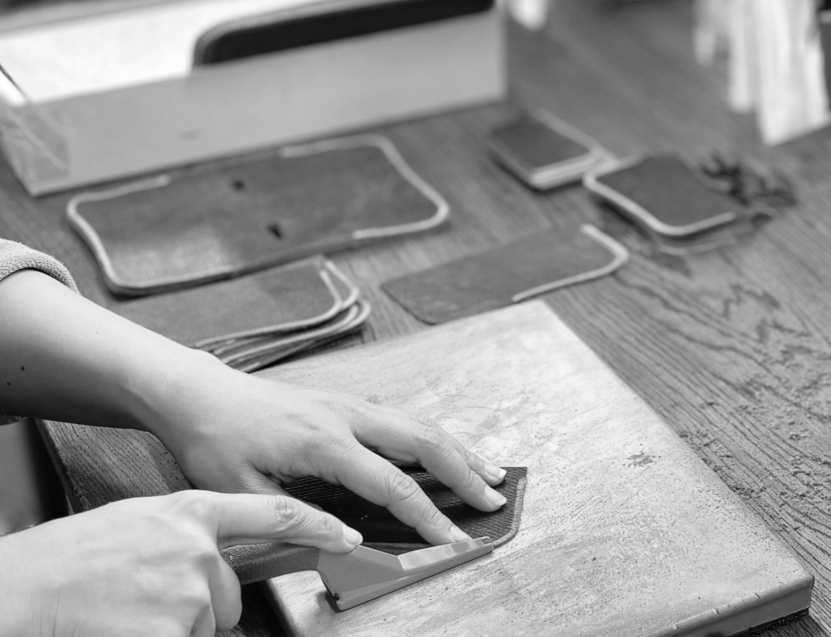 WILDSWANSのアトリエ見学では日頃なかなか見ることができない製作前の様々な種類の大きな革や、WILDSWANS製品の製作過程、職人たちの熟練の技まで余すところなくご覧頂けます。