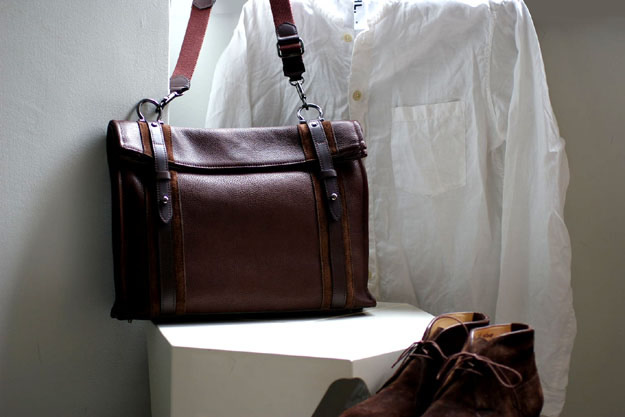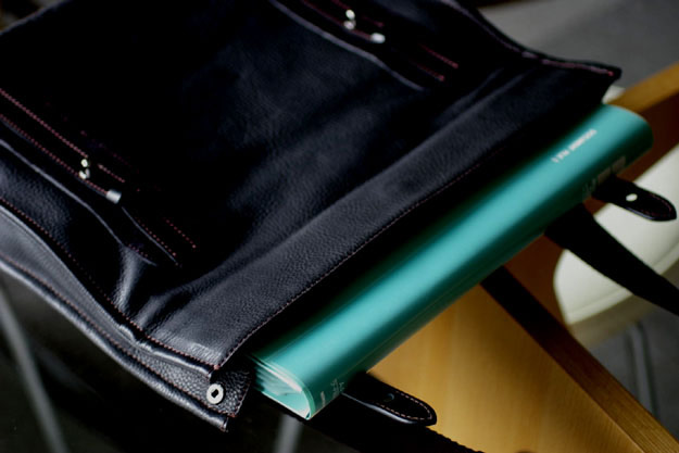 A4の書類ケースを入れてみたところです。マチ幅70ミリの、かなりスマートな鞄ですのでそれ程沢山は入る訳ではありません。そう言った意味ではMac-Bookと書類ファイル1冊などの移動に丁度良いかと思います。