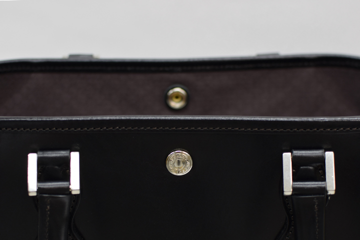 中央にはホックを備えているので鞄の中身が外から見えにくい仕様です。