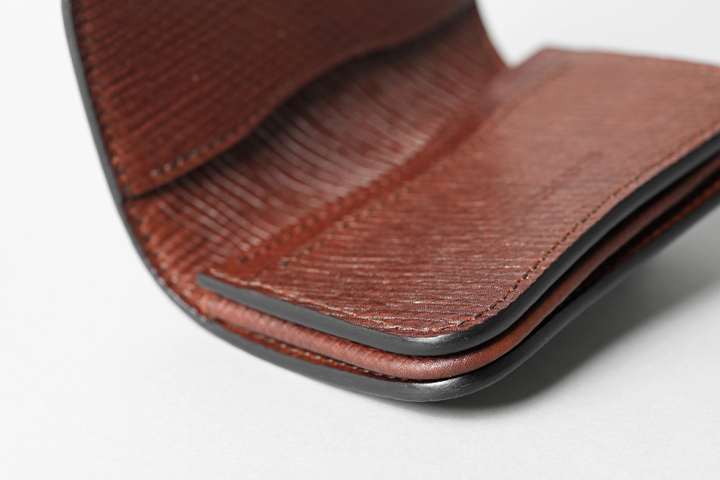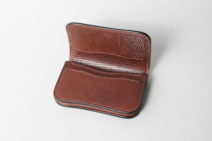 革自体をコバのような曲線に仕上げる珍しい技法で形作られている名刺入れ。WILDSWANS特有の曲線美を堪能できます。