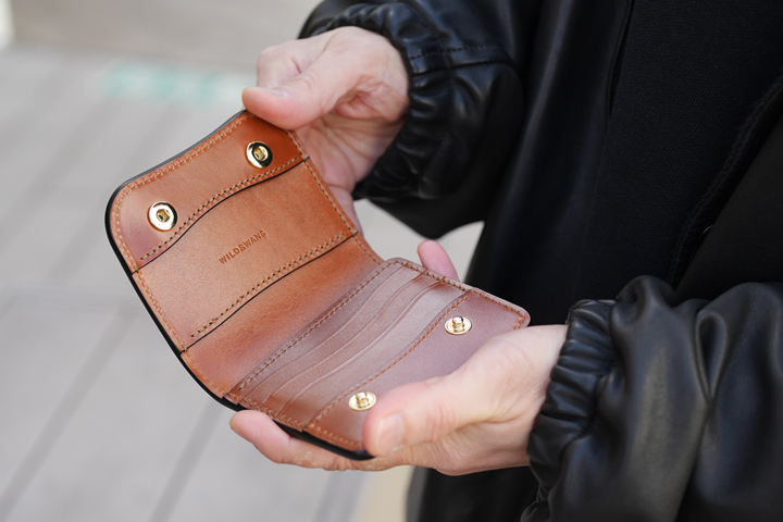 メイン財布として使用可能な収納力を持ったミニ財布2型です。CASAはコインケースフラップの特殊構造により、kf-003よりも数枚カードを多く収納することが出来ます。一方で、WILDSWANSの革小物の中では珍しいエッジや直線のデザインが特徴のkf-003。スマートな雰囲気でビジネスシーンにもマッチします。