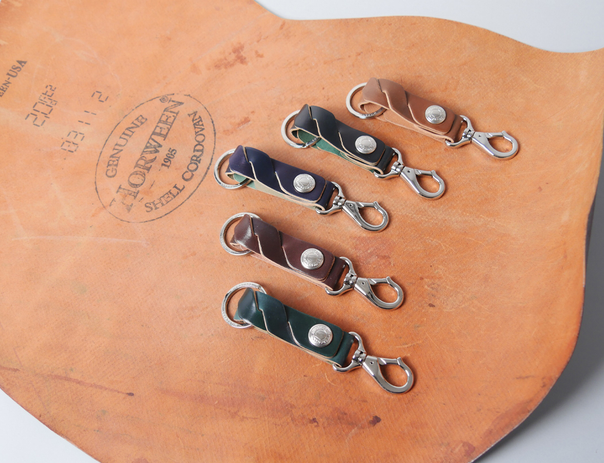 An evolution of the classic SHELL CORDOVAN keychain. This stylish accessory allows you to easily experience the luxurious texture of Shell Cordovan. It is recommended for both personal use and as a thoughtful gift. It is currently available for purchase at WILDSWANS Ginza Store, as well as in WILDSWANS Online Shop.