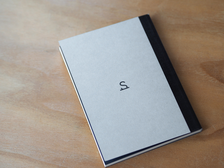 A6判サイズの極力シンプルなレイアウトの表紙で、WILDSWANSの革小物用の箱と同じようにグレーの紙を用いています。中身は従来のMONOKAKIノートと全く同じ仕様の内容で、本文は満寿屋さんオリジナルのクリーム紙を用いた罫線有りの160ページ、見返しの厚紙は濃紺です。