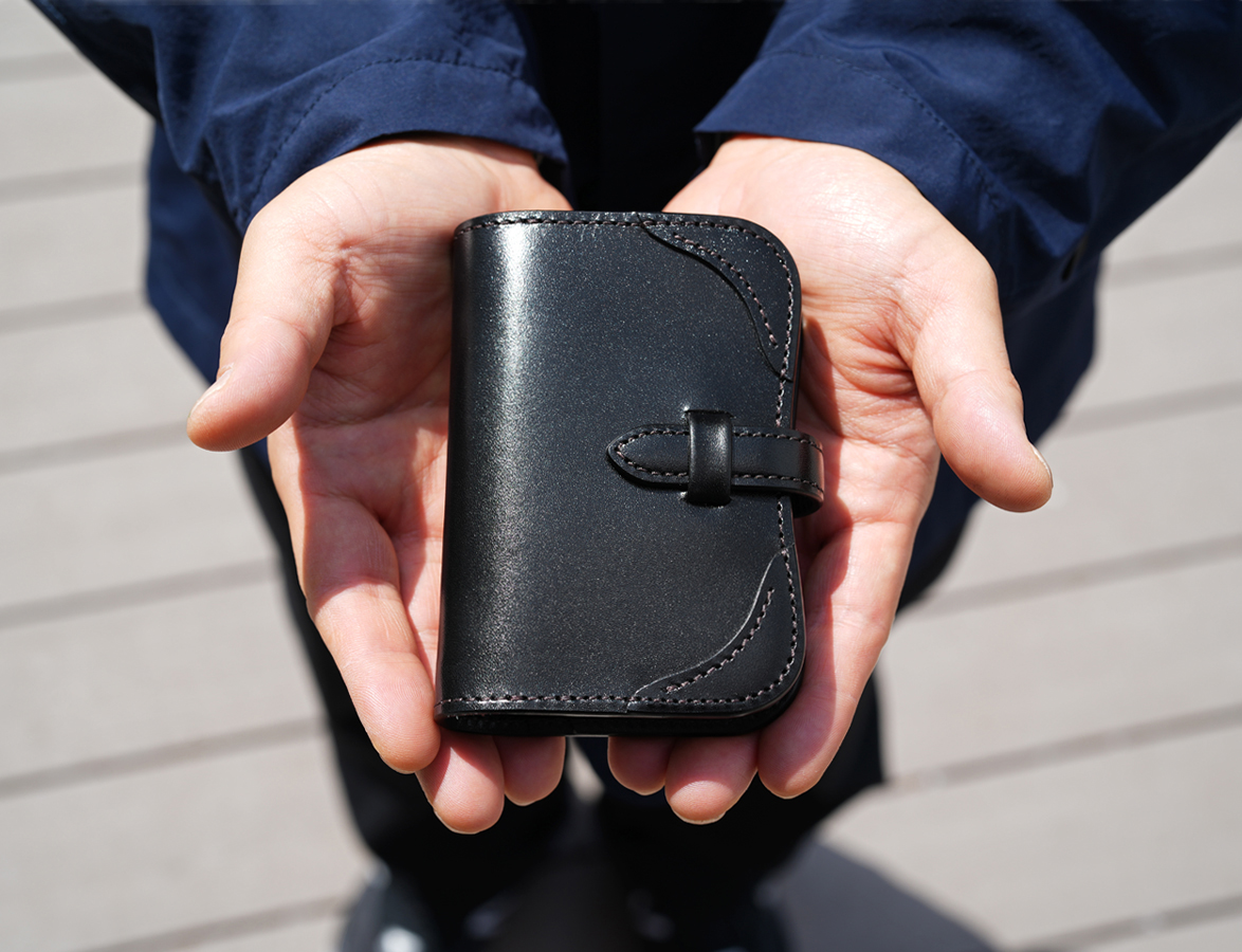 サドルプルアップは高い繊維密度からなる強いハリ感を持ち、タンニン鞣しによって美しい艶が現れるのが特徴です。定番品の3カラー(ブラック、チョコ、ナチュラル)は、完売後に入荷案内のお手続きが可能です。店頭でも多数のエイジングサンプルをご覧いただけますので、ご来店の際にお申し付けくださいませ。