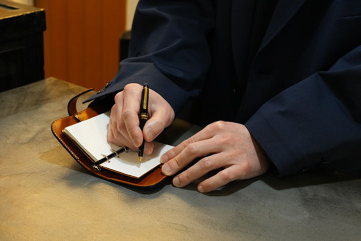 スケジュールを確認しながら思考を書き込み、レシートや切符、名刺などを出し入れして洋服のポケットへ収納する。ここまでの行動がスムーズなのはVERSEならではの小粋な仕様です。