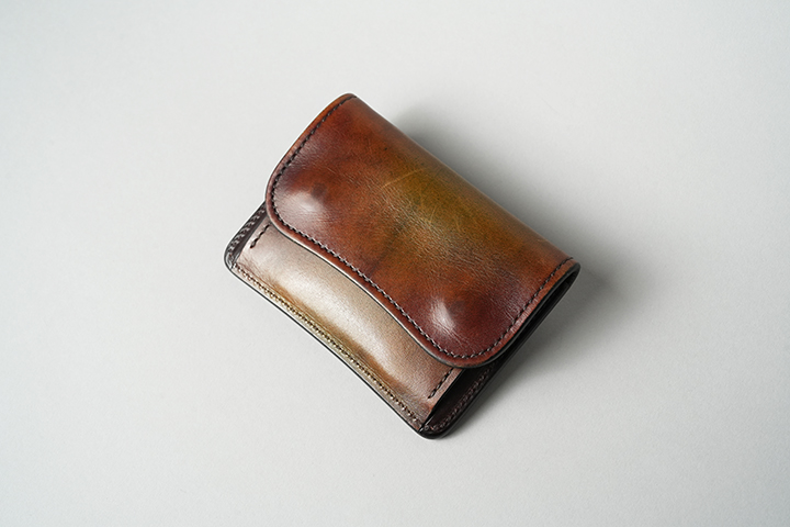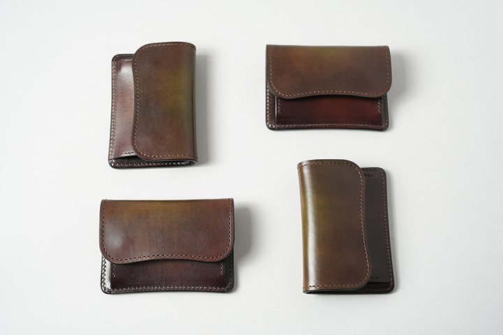 今回、新たに生まれ変わったスフマートシリーズでは、上記3種のアイテムをご用意しました。そしてこちらのスフマートシリーズには、スペインのイルチア社が生産するカーフのベティスが使用されます。ベティスはヨーロッパの厳選された貴重な原皮を原材料としており、高い耐久性を備えながらも適度な柔軟性を持つことで、高級紳士靴メーカーや大手メゾンが好んで使用しています。また、ベティスはパティーヌ(染色)による美しい仕上げが可能となる皮革としても知られています。こうしたことからスフマートという特殊な染色技法に非常に適した素材なのです。また、引き続き染色については藤澤氏が手掛けておりますが、すべて手作業での仕上げとなりますので同じアイテムでも1点1点その表情は異なります。