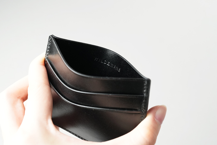 名前の通り、ミニサイズに製作したSHEPARD。あおりポケット状に縫製されていたSHEPARDⅢと違って、中心のポケットは袋状に縫製されています。紙幣も収納できるⅢと比べてカードに特化したケースとなっておりますので、用途によってお選びください。
