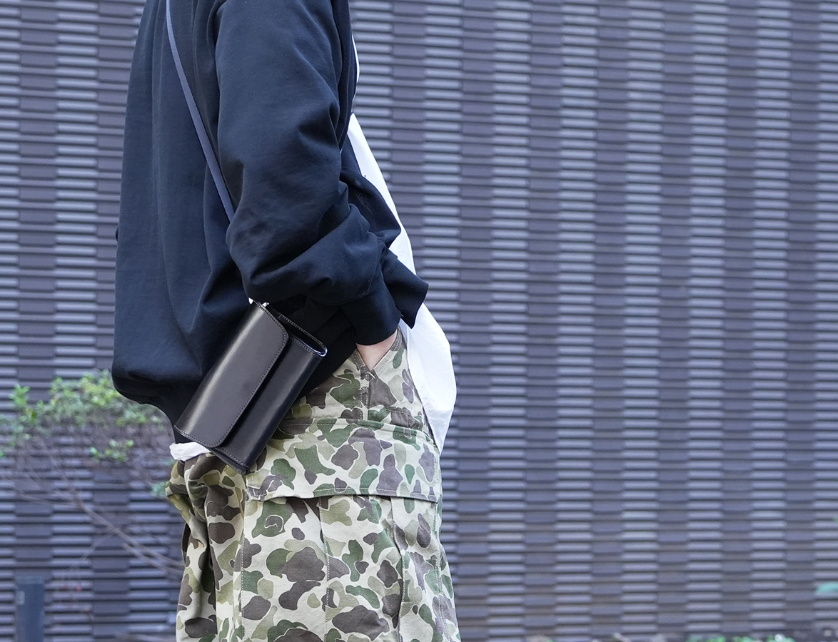 ミニ財布全盛の時に敢えてWILDSWANSが世に送り出すミドルウォレットのB-2。財布に必要な機能はもちろんのこと、スマートフォンの収納も想定した次世代型ケースとしても注目が集まるアイテムです。こちらは現在、WILDSWANSの直営店であるWILDSWANS銀座店とWILDSWANS Online Shopで販売中です。
