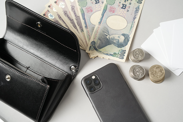 ・一万円札×1枚 五千円札×7枚 千円札×25枚 (背面側の札室に一万円札×1枚 千円札×10枚、スマホ収納部にもあたるメイン収納部に五千円札×7枚 千円札×15枚)