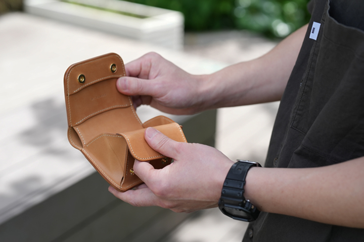 近年人気の三つ折り財布。各ユニットが複雑に重なり合うことで収納量を確保しています。丸っこく愛嬌のある風貌も特徴の一つです。