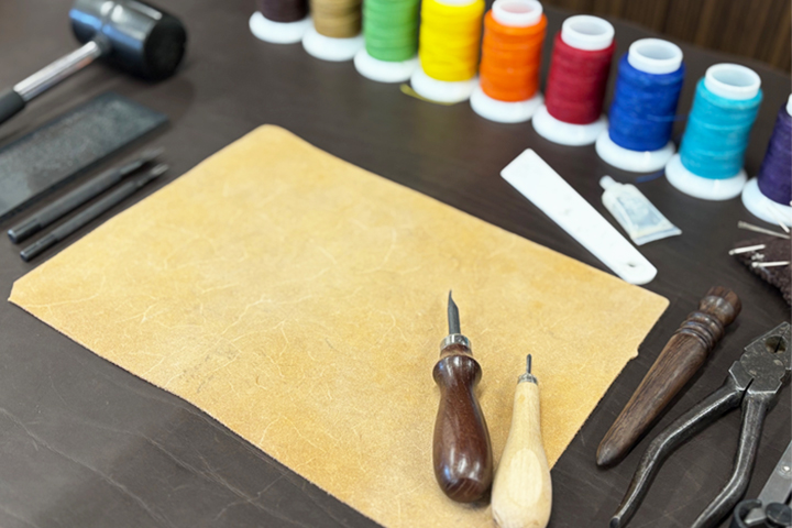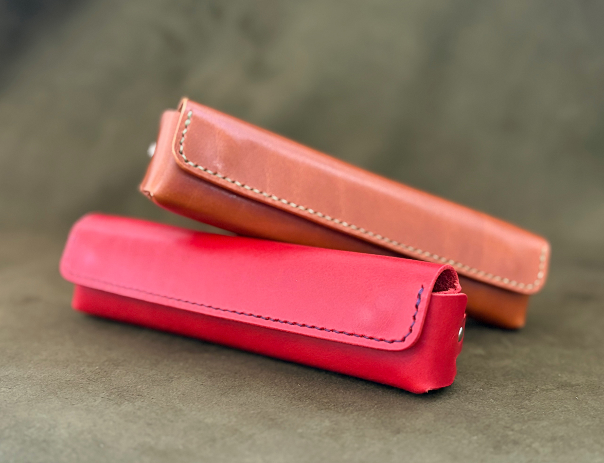 4回目となる今回は、定番皮革の「サドルプルアップ」「ブッテーロ」に加え、「プエブロ」を新たに追加し、約2時間かけてオリジナルペンケースを仕上げて頂きます。