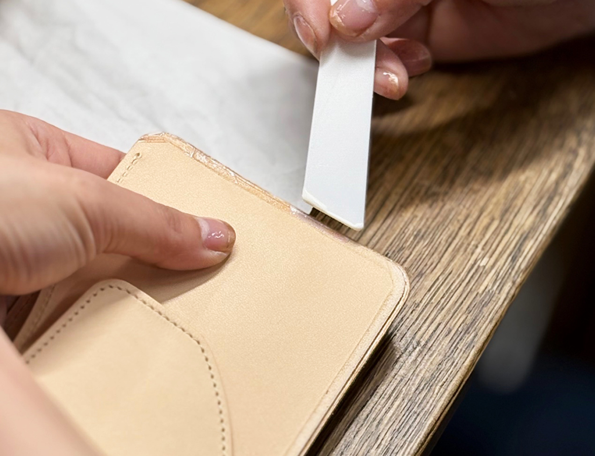 土曜日開催の「通常アトリエツアー」は、仕入れたばかりの様々な種類の原皮をはじめ、皮革の裁断・縫製・仕上げといった、一般のお客様が普段見ることのできないWILDSWANS製品の製作過程を、熟練職人の技工とともに間近でご覧いただくことができる見学会です。職人がツアーガイドとして同行し、作業の解説やご質問への対応をいたします。