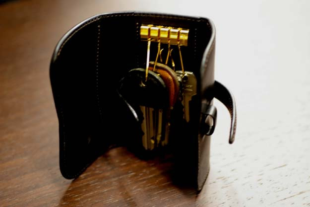 向かって1番左側にあるリングだけ大きいリングになっていますので、ここは大きい鍵用になります。その他の3つのリングは全て同じ大きさで、通常の鍵用になっています。
