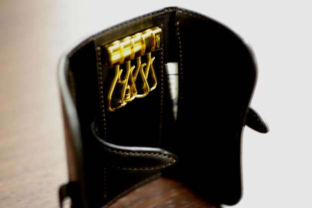 サドルプルアップという革もそうですが、前回述べた通りこのアイテム自体も非常に無骨で男性的な、且つオールドファッションなキーケースになっています。