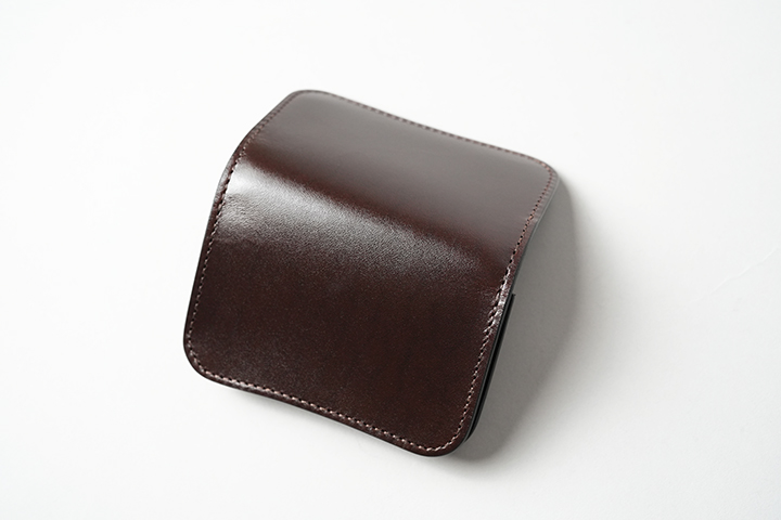 定番の名刺入れGENERAL。外装は一面サドルプルアップのチョコとなりますが、内装は3つの皮革が相まみえる特別な仕様です。とても小さなボディですが、両サイドの伸縮するマチ構造によって、メイン収納部への名刺収納枚数は最大60枚となります。