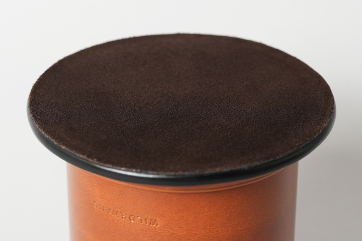 底部分には革が数枚貼り合わされ、末広がりになっていることで安定感があります。この末広がりになっている様子がモデル名CHAPEAU(仏語:帽子)の由来にもなっています。