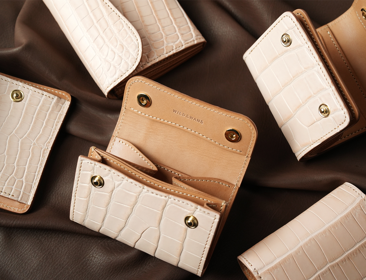 神々しいヌメクロコと強靭なバスタン&フィスのヌメ革同士の貴重な組み合わせで、全6アイテムをご用意させて頂きました。こちらのアイテムは6月29日昼12時よりWILDSWANSの直営店であるWILDSWANS銀座店とWILDSWANS Online Shopで一斉に発売させて頂きます。新旧織り交ぜたラインアップの注目のシリーズです。各店の販売方法は各アイテムの詳細の後でご案内しております。