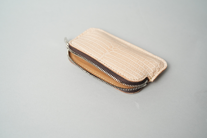 軽量でコンパクトなMINASは、カードケースやミニウォレット、キーケースまで幅広くご使用頂けます。YKKのエクセラファスナーを開いた収納部にはプラスチック製カードが最大15枚収納可能です。ヌメクロコを比較的手軽にお楽しみ頂けるアイテムですので、ご興味がある方はMINASからのチャレンジをおすすめします。