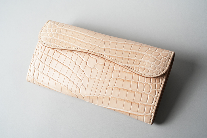 時代の変化により、企画モノとしての登場回数が減少しているWAVE。ただし、ここ日本ではまだまだ長財布の需要があり、WAVEの価値は健在と言えるでしょう。フラップの先端から本体の前身部分まで切れ目のないヌメクロコを用いた外観は、すさまじい迫力があります。