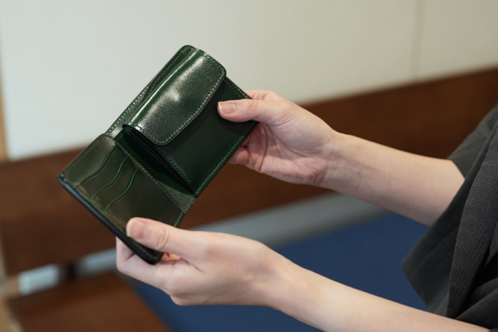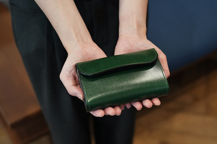 ベルギー・マシュア社の製造するサドルプルアップは、植物タンニンで鞣された堅牢な皮革です。WILDSWANSのブランド創立当初から使用をしており、今まで様々なカラーをご用意して参りましたがその中でもグリーンは特に好評を頂くカラーです。 常盤色(ときわいろ)、織部色(おりべいろ)とも表現できそうなサドルプルアップのグリーンは、美しい暗めの緑色です。安らぎや落ち着きを感じるグリーンカラーのアイテムを身の回りに取り入れ、暑い夏を乗り越えるお守りとしてはいかがでしょうか。