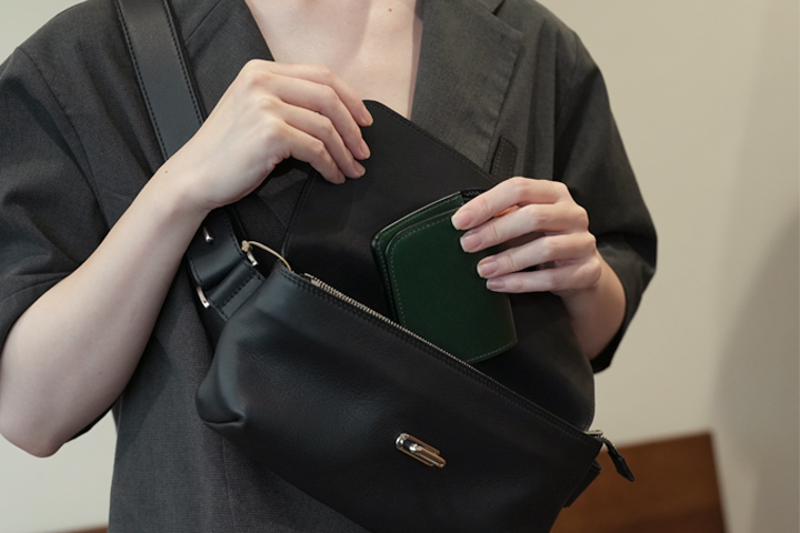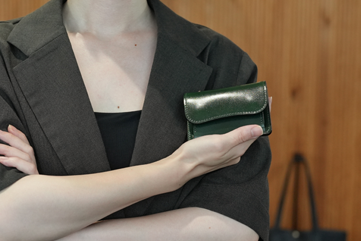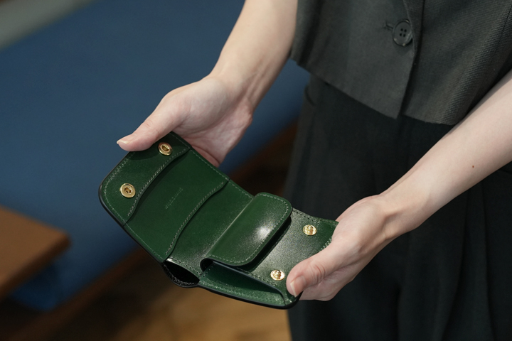 硬貨の他、3つ折りにしたお札やプラスチックカードの収納が可能なコインケース。軽装でお出かけしたくなるこれからの季節、ミニマムなお財布としてご使用いただけます。