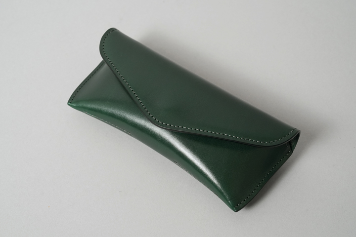 曲線の中にもシャープさを残したメガネケース。マチパーツを用いずに立体感をキープし、内装に貼られたスエードが大切な眼鏡を守ります。