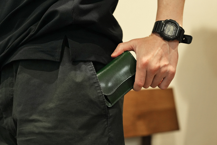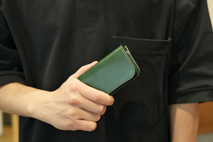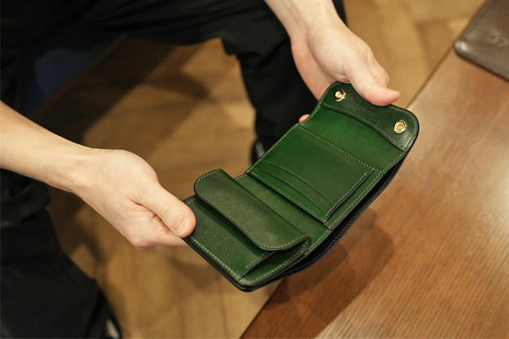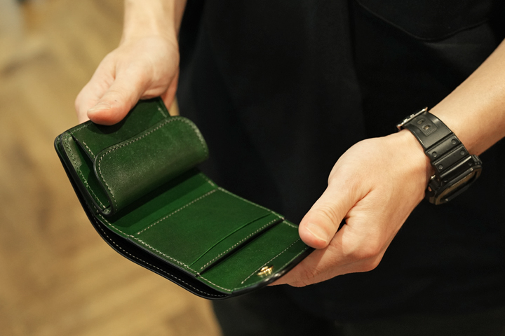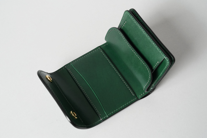 ミニ財布以上、長財布未満の収納力を持つ三つ折り財布。サイズや使用感の他、WILDSWANSの特徴であるコバが多層に重なる様子や、丸く可愛らしい様子が人気の理由でもあります。