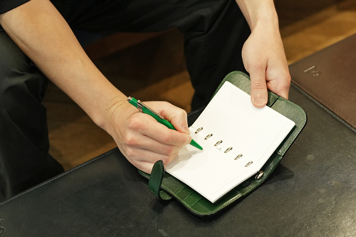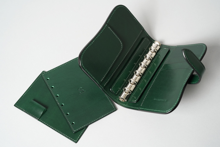 アンティーク感漂うコンパクトなシステム手帳。3種類のポケットやペン挿し付きの下敷きを備えているので、筆記具やメモ、付箋なども一緒に持ち運ぶことができます。