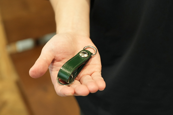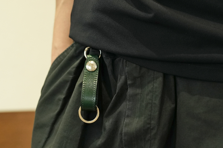 革の帯を頑丈なジャンパーホックで留めたシンプルなキーホルダー。WILDSWANSのカラビナやお好きなキーリングを接続して使用することができます。鞄やベルトループなどに付けていただければ、様々なシーンにさりげなく溶け込みます。