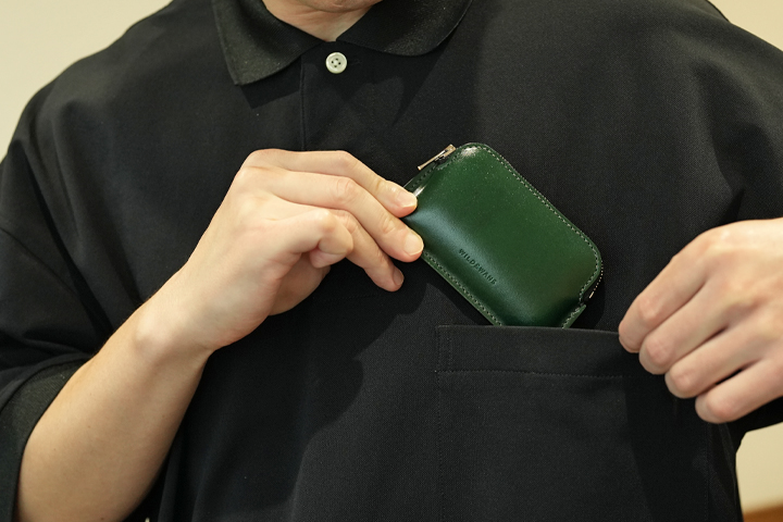 手のひらに収まるミニマムサイズのZIP付きケース。硬貨、カードを収納するのはもちろん、日用品やデスク周りの小物を収納することができます。中に物を収納しても小ぶりのため、ズボンのポケットにもすんなりと入れることが可能です。