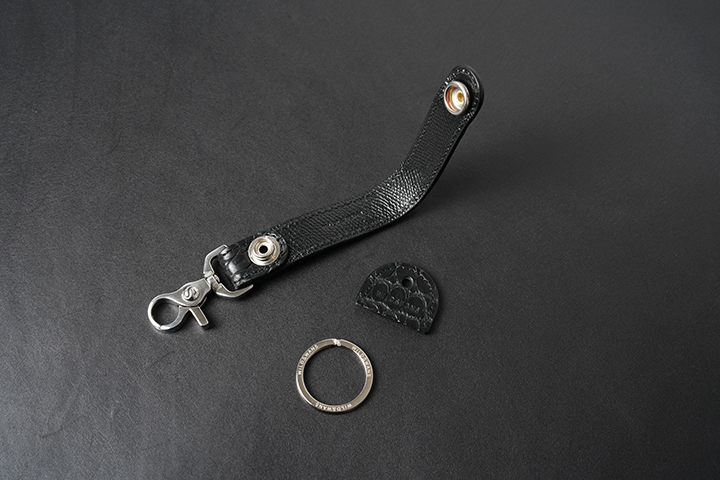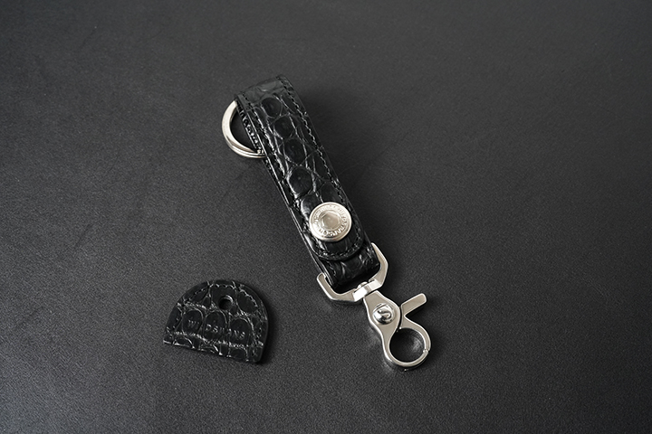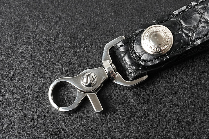 特別なポロサスで製作したBRANCHⅡは、TRIGGER SNAPと同じサージカルステンレス素材で、さらにブランドロゴが刻印されたナスカンパーツを付属したスペシャルバージョンです。至高のレザーに相応しく、製品としての品格を高めています。とても小さなアイテムですが、帯部分とキーキャップに使用された宝石のように美しいポロサスにより、WILDSWANS史上一番ラグジュアリーなキーホルダーとなりました。
