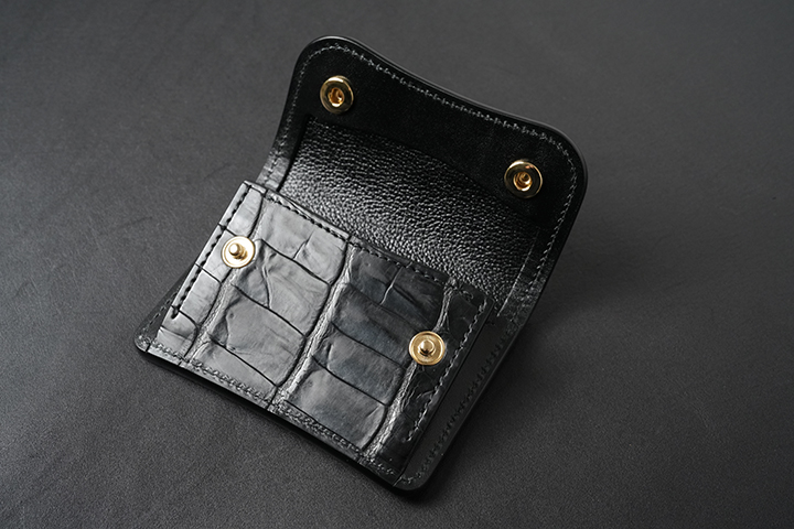 一つ一つの鱗が際立つTONGUE。至高のアイテムに相応しく、通常のクロコTONGUEでは使用しない、コインケースの前身部分までポロサスがあしらわれています。限定シリーズには欠かせないTONGUEですが、これまでにはない立体的に黒光りするポロサスの存在感により、まさしく至高のアイテムとなりました。