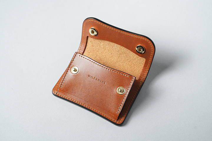WILDSWANSの原点に立ち返るクラシックシリーズ。現行の定番品にはない極厚のサドルプルアップを製作に用いることにより、サドルプルアップそのものが持つ強靭なハリ感と重厚なコバを余すところなくご堪能頂けます。今回は、前回登場したブラックとチョコ以外にスポットカラーとして、サドルプルアップのキャメルをご用意させて頂きました。屈強なサドルプルアップは、そのエイジングにも注目が集まる皮革ですが、明るいトーンのキャメルは美しい光沢に加えて色味の変化が大きく、よりダイナミックな変化をお楽しみ頂けるでしょう。