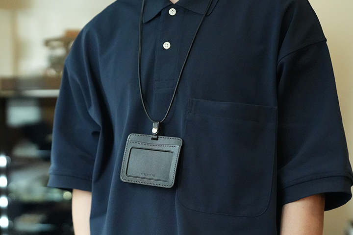 ※BLACKとCHOCOLATEのカラーについては、IDケースのコバ(革の裁断面)には染料を塗布して仕上げています。ストラップのコバには染料を使用していませんが、全カラー共に皮革表面のカラーも含め装着時に摩擦などで移染が起こる可能性がありますので、できるだけ暗いトーンのお召し物と合わせて頂くことをお勧めします。