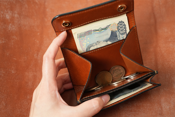 To maximize capacity, the bottom is left unstitched, keeping the gusset-free storage part slightly raised. This allows bills to be inserted into the gap beneath the part. While some wallets on the market allow unfolding bills, you can fold your bills in half for storage in this PONT wallet, too. It comfortably holds multiple bills.