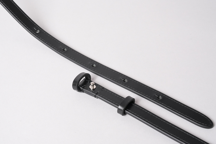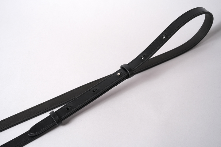ショルダーストラップ端のナスカンを止めている部分には、SOMÈSの馬具から要素を拝借し、中心に縦ステッチを入れています。馬具においてこの縦ステッチは縦方向の張力に耐えるための構造ですが、今回のショルダーストラップにおいてはアイコン的な要素も含んでいます。