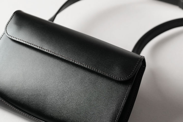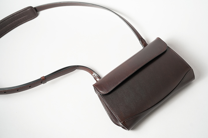 サドルプルアップはベルギー・マシュア社が生産する非常にハリ感の強い牛革です。昔から馬具にも使用されていた皮革のため、耐久性の高さも折り紙つきです。また、サドルプルアップは今日では珍しいタンニン鞣しで仕上げられていることから、使用することで透明度の高い独特の艶感が生まれます。WILDSWANSではお財布での製作が多いサドルプルアップですが、鞄でもそのポテンシャルを十分に発揮できる素材です。今回ご紹介するRETRA(レトラ)は、WILDSWANSが20年以上にわたって培った経験や技術を生かすことで完成したミニショルダーバッグです。