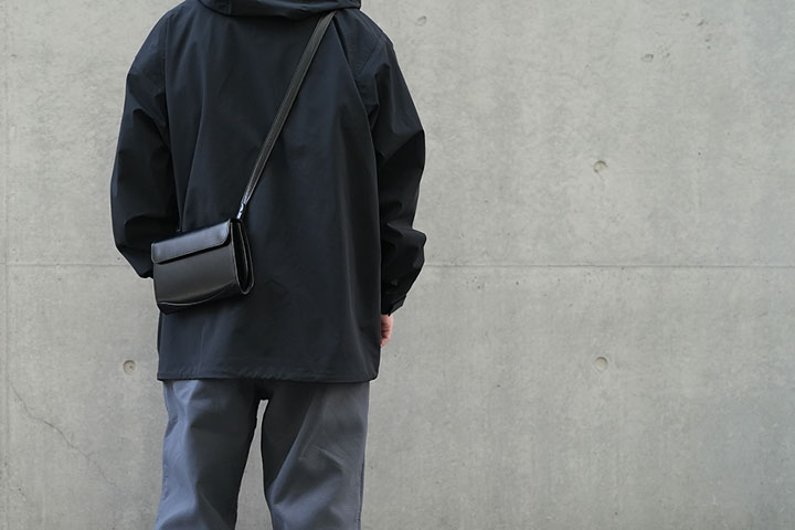 フラップ先端部分を除くとWILDSWANSらしい美しい曲線を随所にあしらったデザインが採用されています。マチ部分の本体からせり出たコバは、WILDSWANSのアイデンティティーとも言える仕上げ方法によって力強さと美しさを調和させ、RETRAを象徴するパーツとなりました。また、留め具にはこれまで主に財布などで使用しているホックが採用されるなど、従来からのWILDSWANSのイメージがそのまま投影されたミニショルダーバッグに仕上がりました。こちらのRETRAは、WILDSWANS GINZAがオープンする11月29日にWILDSWANS GINZAにて先行発売させて頂きます。RETRAの詳しい仕様などについては、この後ご紹介させて頂きます。