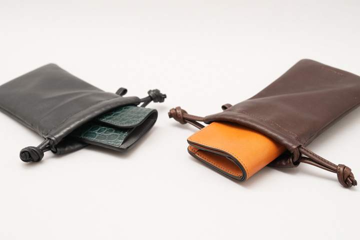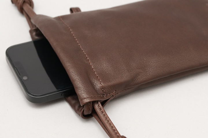 革の上質さを感じながらシンプルにご使用頂けるドローストリングバッグ・BOURSE(ブレス)から、ミニ財布やスマートフォンに最適なSサイズが登場致しました。