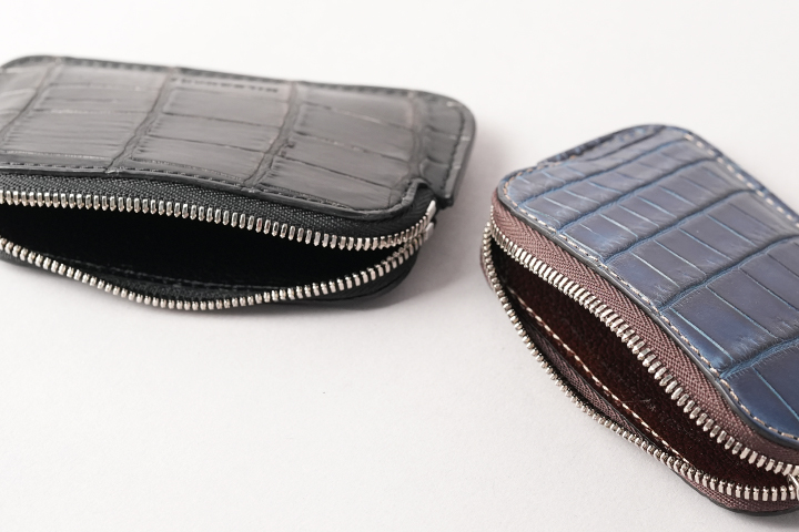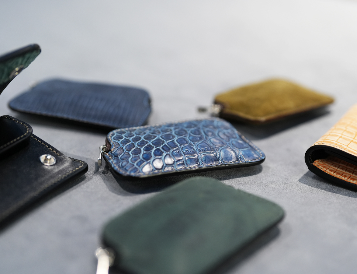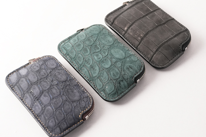 カラフルなヌバッククロコダイルを使用した革小物シリーズです。