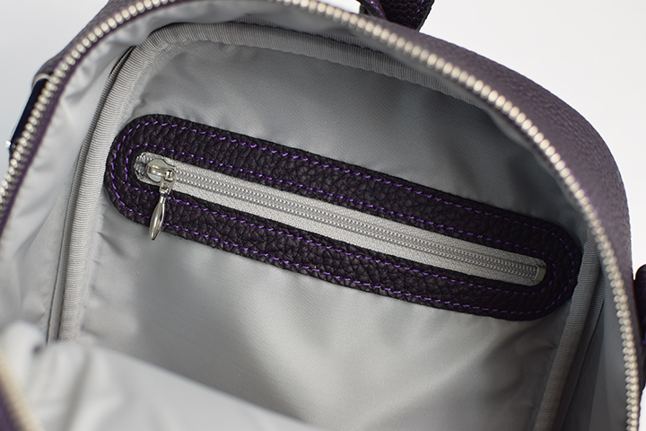 また、内装の背胴側には、H10×W13㎝のファスナー開閉タイプのマチ無しポケットを装備しています。