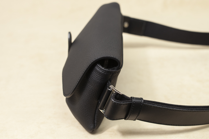 外装にドイツ・ペリンガー社のシュランケンカーフを用いたこのショルダーバッグは、軽量で身体にフィットして全体のシルエットを崩さない特性により、手ぶらに近い感覚でお財布やスマートフォンといった小物類を持ち運ぶことが出来ます。