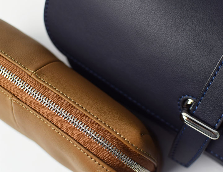 今回はミニショルダーバッグ・SVELTOとポーチ・MP-RUELLEに新色のネイビーとキャメルの2色が加わりました。