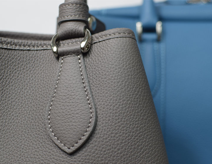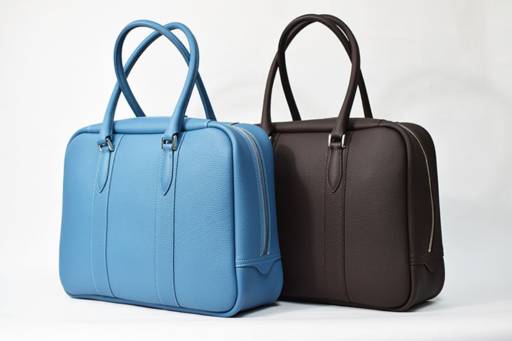 どちらも外装には発色が良く、耐久性に優れたドイツのシュランケンカーフを贅沢に使用しており、その特性を十分に生かしたふっくらした質感により女性らしい優雅なディテールのバッグに仕上げています。