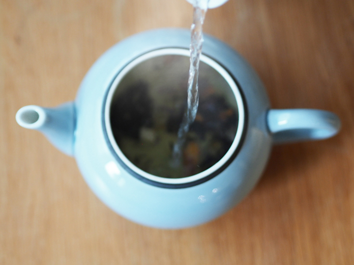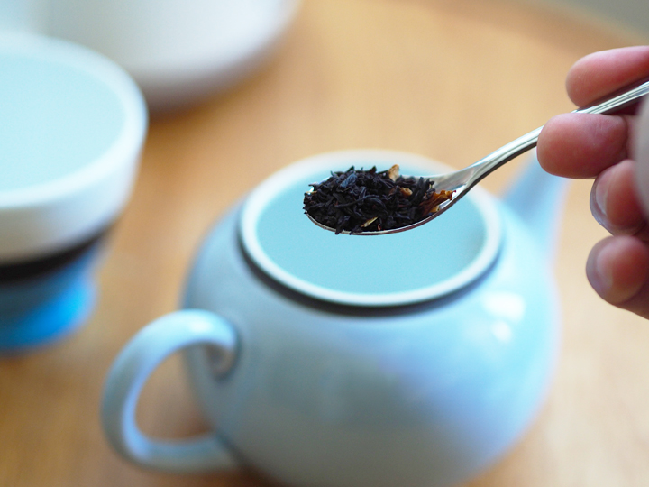 ③杯数分の熱湯を入れ、蓋をしてからお好みで2~4分程度ポットの中で茶葉をじっくり蒸らします。この待ち時間が結構重要です。
