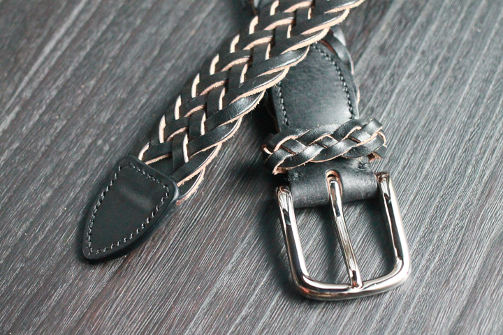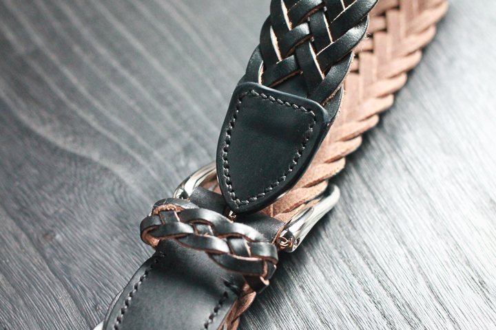 また、ベルトのサルカワ(バックルで留めた後にベルトの先端を差し込むループ部分)も4本の皮革で編み込んで製作されています。