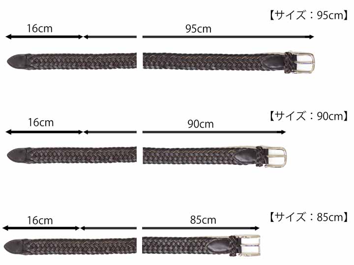 なお、今回のベルトはサイズを95cm/90cm/85cmと3サイズご用意しております。
