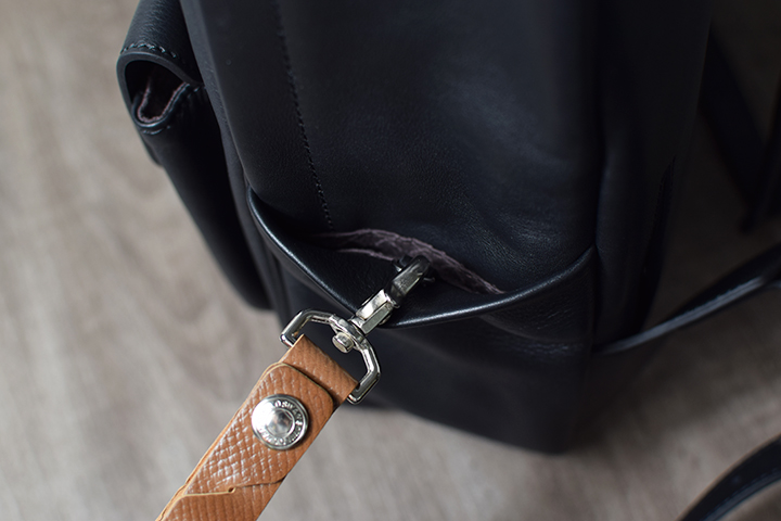 こちらのホックは慣れるまで開閉の際にそれなりの力が必要ですが、裏を返せばそれだけ強力なホックなので、容易に外れてしまうことがないという安心感があります。