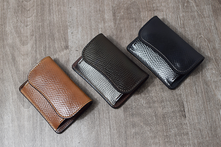 これまでも様々な革を用いて製作してきた人気のアイテムですが、型押し革での製作が意外に少なく、その姿に新鮮な印象を受ける方も多くいらっしゃるのではないでしょうか。