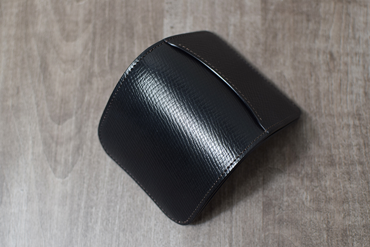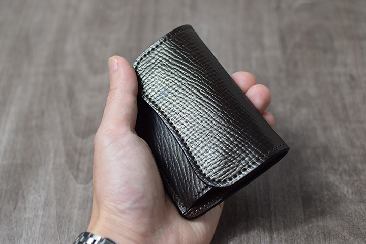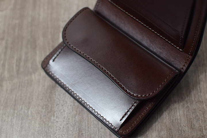 PALMと同じカテゴリーのミニ財布のkf-003はPALMのように背面のポケットがないため、ホーウィンシェルコードバンRUSSIA/HATCHを用いた外観は非常にすっきりとした印象を受けます。